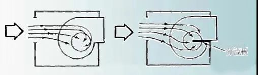 气流进入风机进气箱的方式也会影响风机的性能。进气箱进口与进口不对称会形成气流不均匀或进气涡流,应避免。如果无法做到这一点,可安装分流板,以消除进气涡流并改善进气条件。